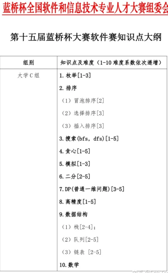 2024年的蓝桥杯大赛的大纲已经出了,附上几张图吧。