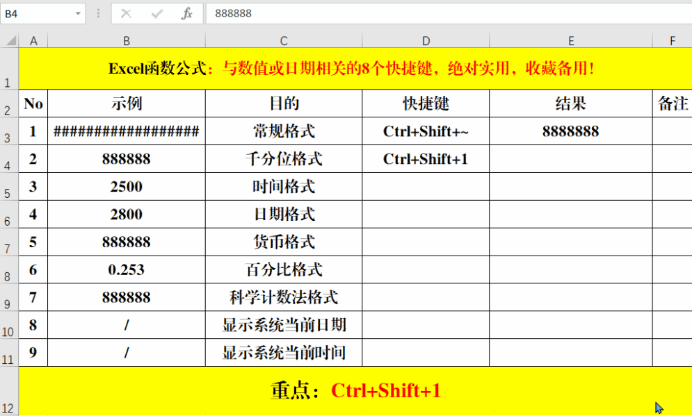 快捷键,在办公中的作用无法替代,如全选内容的Ctrl+A、复制的Ctrl+C、粘贴的Ctrl+V等等……但今天我们要介绍的是与数值或日期相关的8个快捷键,绝对的实用哦!