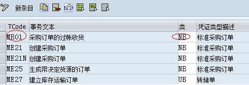 事务码SM30维护表VV_T160_V1,定义MB01事务的默认采购凭证类型,如下图: