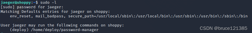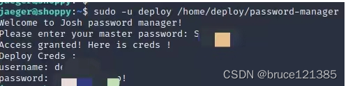 发现该用户可以deploy用户运行 /home/deploy/password-manager,我们运行该指令,发现需要输入密码