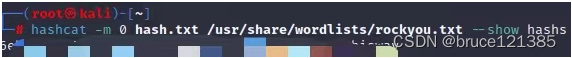 使用 hashcat搭配字典rockyou(默认在/usr/share/wordlists/下)可获得密码