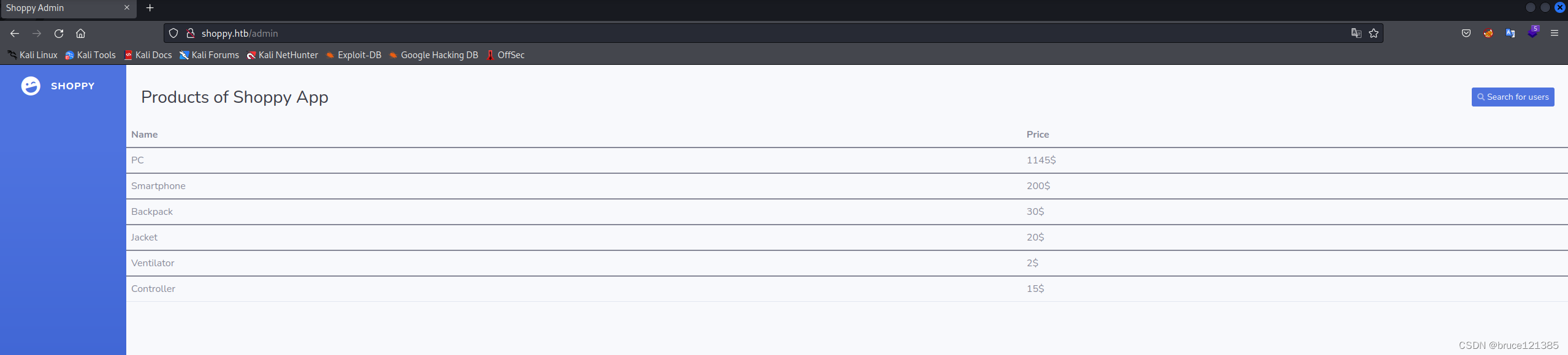 此时可想到尝试使用万能密码对两个登录页面进行尝试,在shoppy.htb/admin,使用payload:admin'||''==='可进入后台