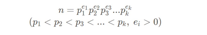 对于任何整数n,都可以唯一分解成质数的乘积,将相同的质数合并后即可得到