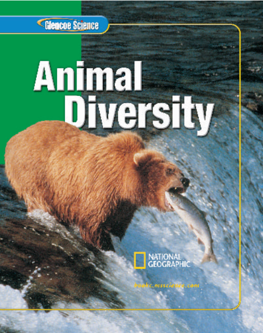 Glencoe Science模块系列教材,模块C - Animal Diversity,2005版,227页。全书分为5大章(Chapter),每章由若干小节(Section)构成,各章后附有Study Guide,Review与Standardized Test Practice。
