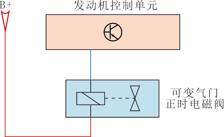 数字式万用表的刷新速度通常是2次/s(部分高端万用表能达到4次/s),若用它测量一个信号电压,会在显示屏上显示一个读数,这并非实际电压,受限于较慢的刷新速度,这只是平均电压。举个例子,图1为可变气门正时电磁阀电路,红色线路为供电线,发动机控制单元控制蓝色线(控制线)搭铁,使电磁阀工作。将数字式万用表的红表笔接在控制线上,黑色表笔接搭铁,测得的电压约为8.7 V,这是实际电压吗?