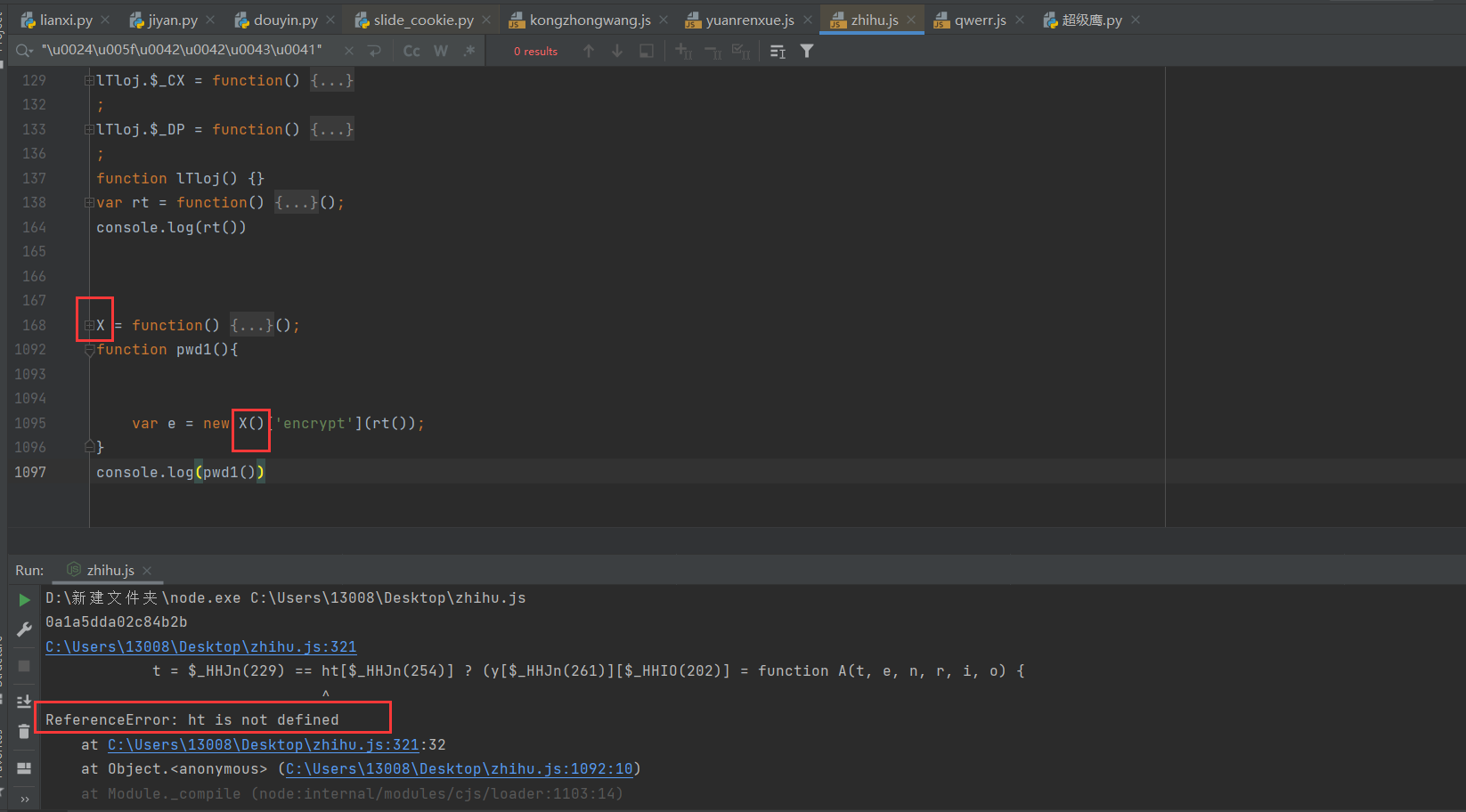 然后定义个方法,将x抠出来,rt()传进去,提示ht没有定义