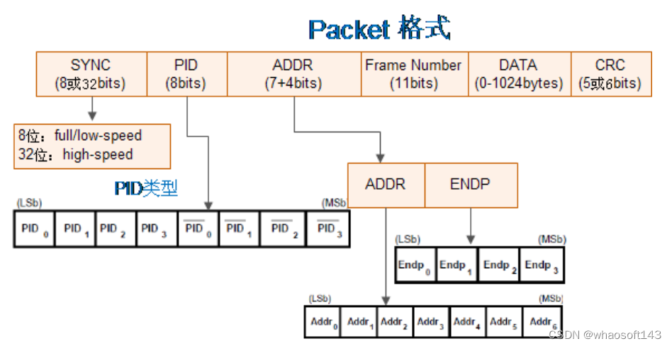 SYNC+PID+11位FRAM+CRC5(五位的校验码)