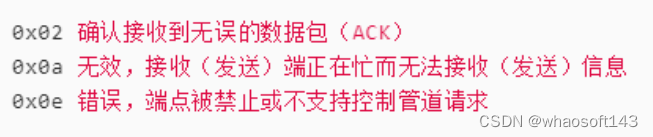 2) 设备正在忙,无法往主机发出数据包就发送NAK无效包,通知主机再次发送数据;