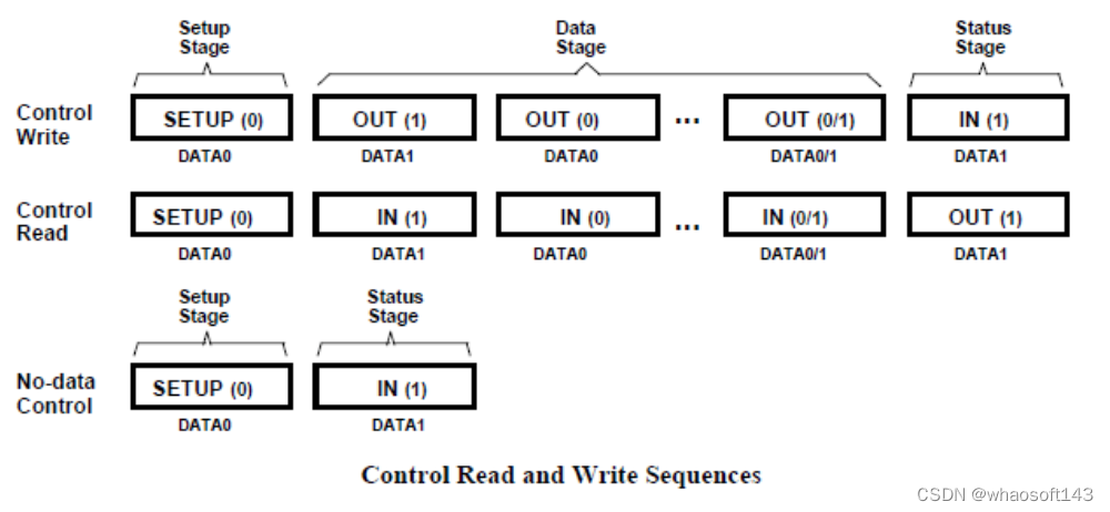 根据数据阶段的数据传输的方向,控制传输又可分为3种类型: