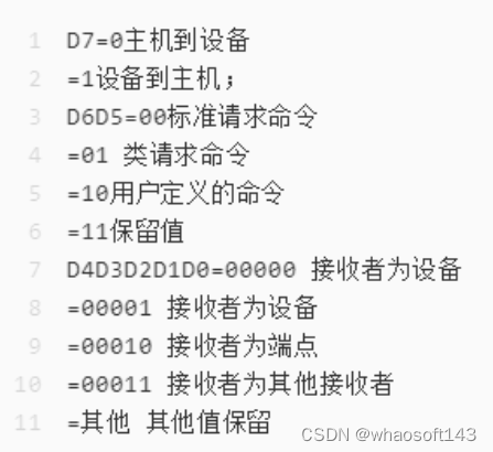 1、bmRequestType:D7D6D5D4D3D2D1D0