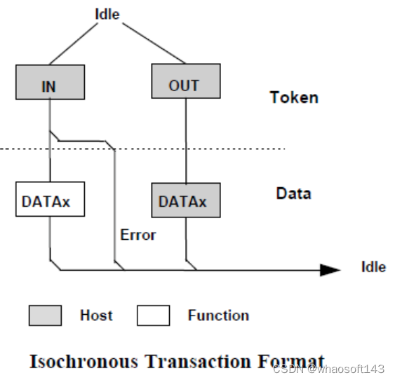 它通过在硬件级执行“错误检测”和“重传”来确保host与device之间“准确无误”地传输数据,即可靠传输。它由三种包组成(即IN事务或OUT事务):