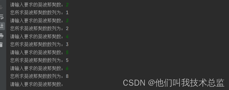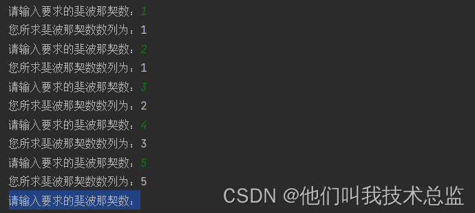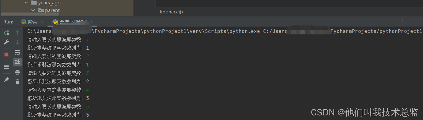 讯享网def fibonacci(n): if n == 1 or n == 2: return 1 return fibonacci(n-1) + fibonacci(n-2) if __name__ == '__main__': while True: n=int(input("请输入要求的斐波那契数:")) print("您所求斐波那契数数列为:"+str(fibonacci(n)))