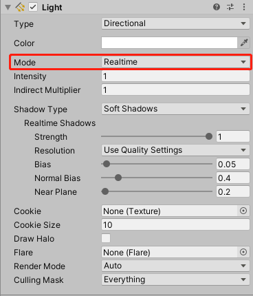 ②Realtime:Unity中创建的光源默认都是Realtime类型,Realtime的直接光始终存在,而在启用Realtime GI的条件下,Realtime光源会产生间接光