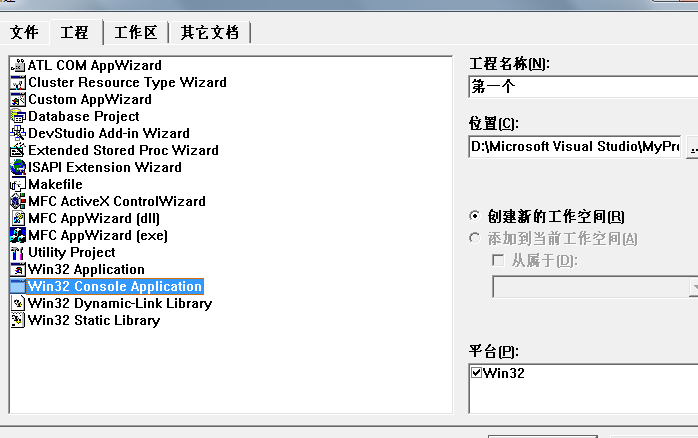 3.先点击选择Win32 Console Application;然后输入工程名称。