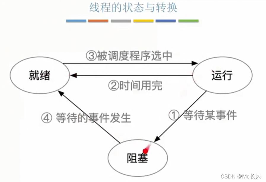 运行到就绪大有可能就是有线程抢占了处理机资源,也可以使用yield方法线程自己礼让