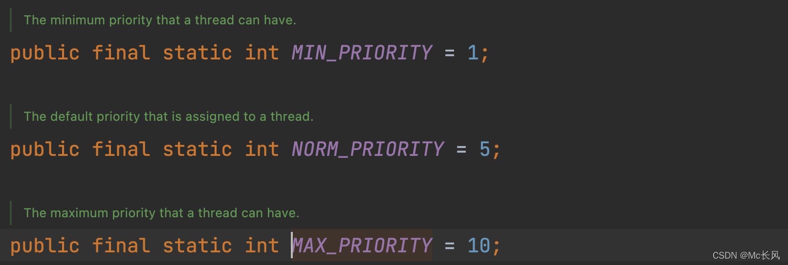 Java线程按照数值划分等级,从1~10数值越大等级越高。