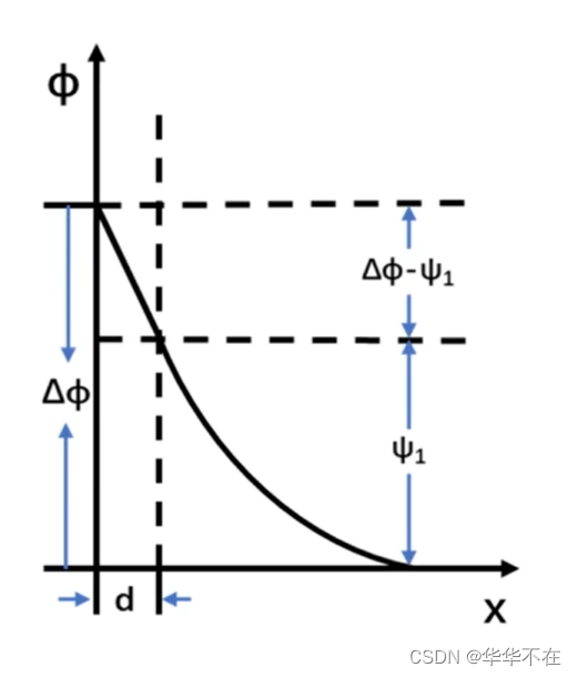 2.分散层模型(Gouy-Chapman理论):考虑溶液相中离子的热运动,离子分布符合玻尔兹曼分布,完全忽略紧密层的存在。(未考虑金属相的电子分布,同样理想化)