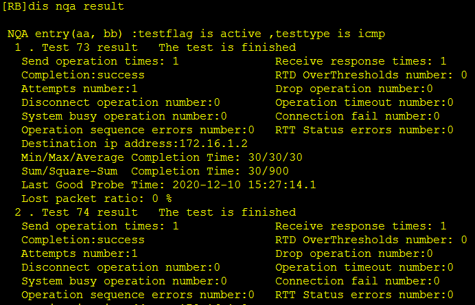 第五步,在RB上配置RB和SA之间的NQA ICMP测试例。