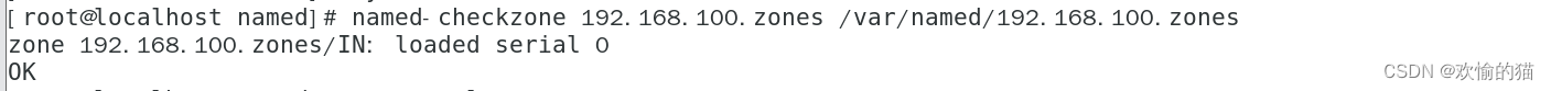 例如:named-checkzone 192.168.100.zones /var/named/192.168.100.zones