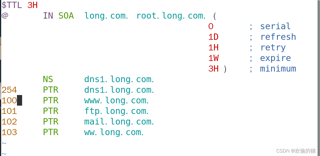 zone "long.com" IN { zone "需要解析的域名" IN {