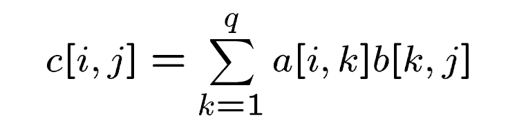 首先,学过线性代数的同学知道,一个p*q的矩阵A和一个q*r的矩阵B的乘积是一个新的p*r的矩阵C,计算公式如下: