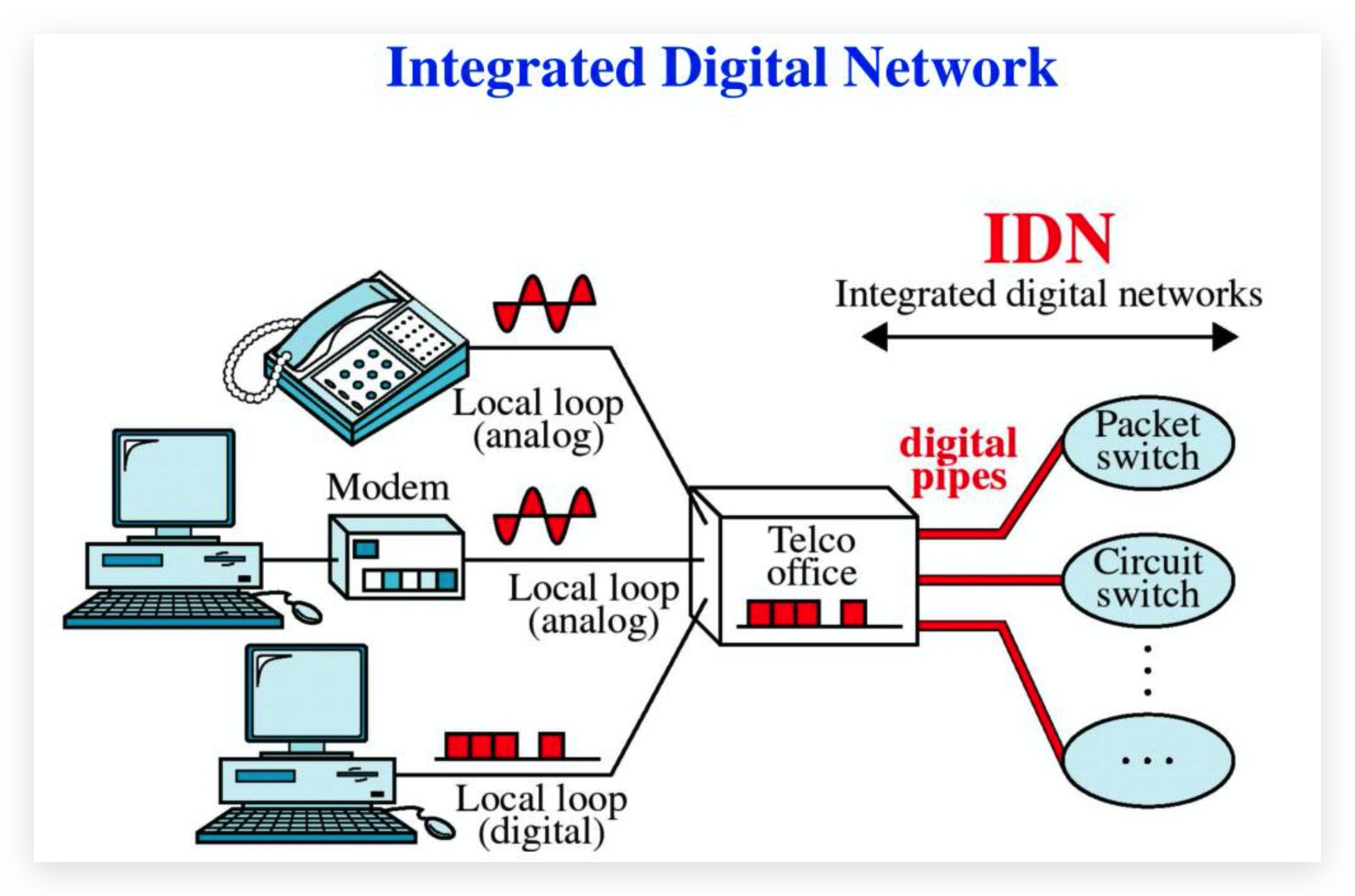 在ITU的建议中,ISDN是一种在数字电话网IDN(该网能够提供端到端的的数字连接)的基础上发展起来的通信网络,ISDN能够支持多种业务(包括电话业务以及非电话业务)