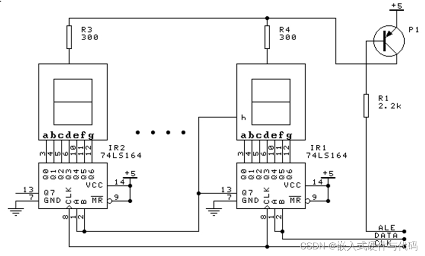 下面是一个用74LS164驱动数码管显示的例子: