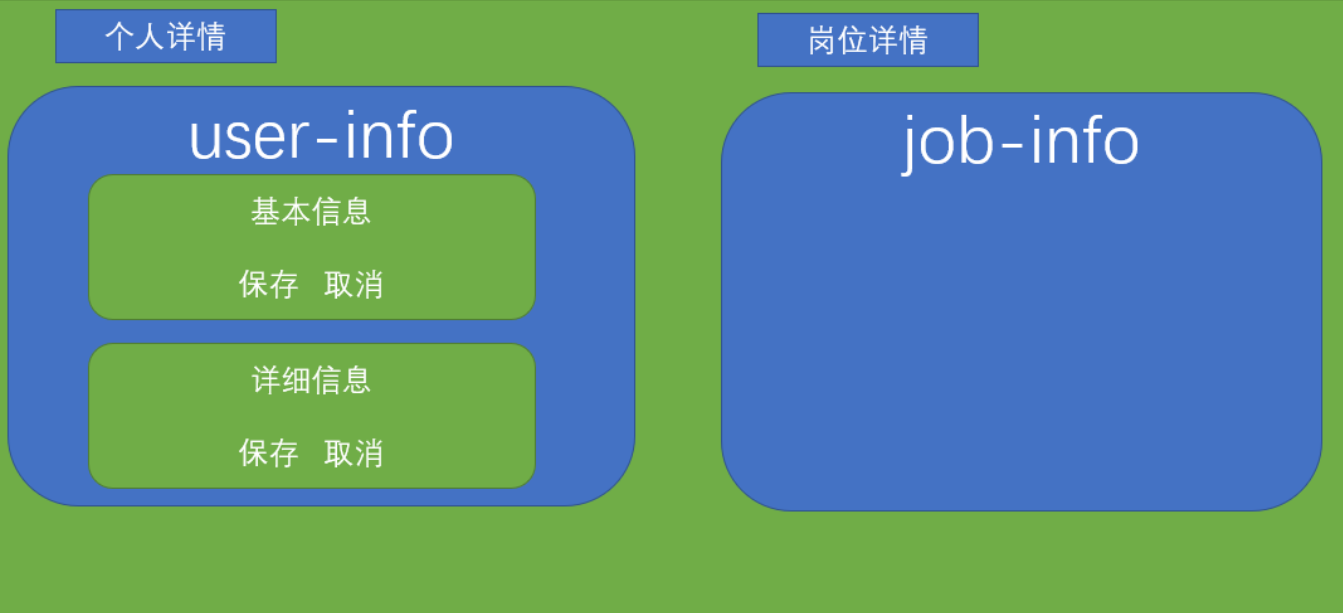 员工个人信息分为三部分,账户,个人, 岗位,这个小节我们对个人组件和岗位组件进行封装