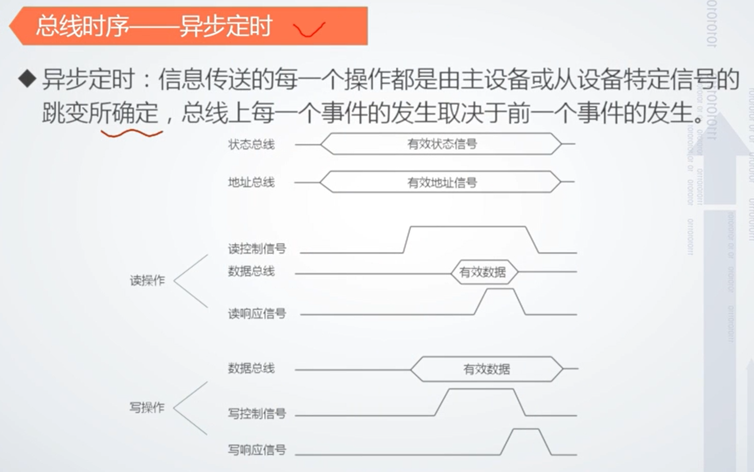 总线上不存在时钟,每一个事件的发生取决于前一个时间的发生;