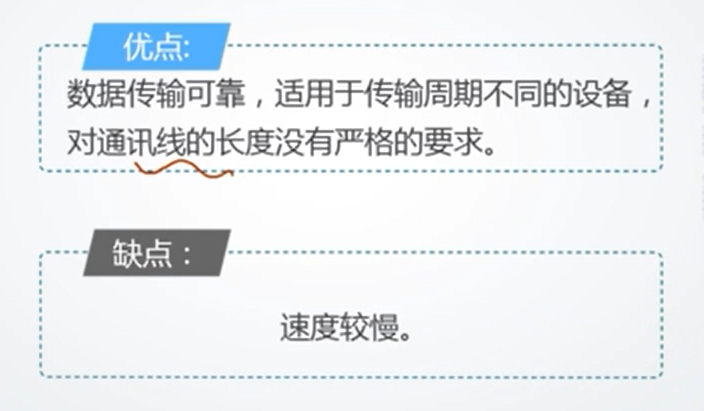 每一次传输过程,都会有一次握手,数据传输安全可靠,对通讯线的长度也没有严格的要求,但是速度比较慢。