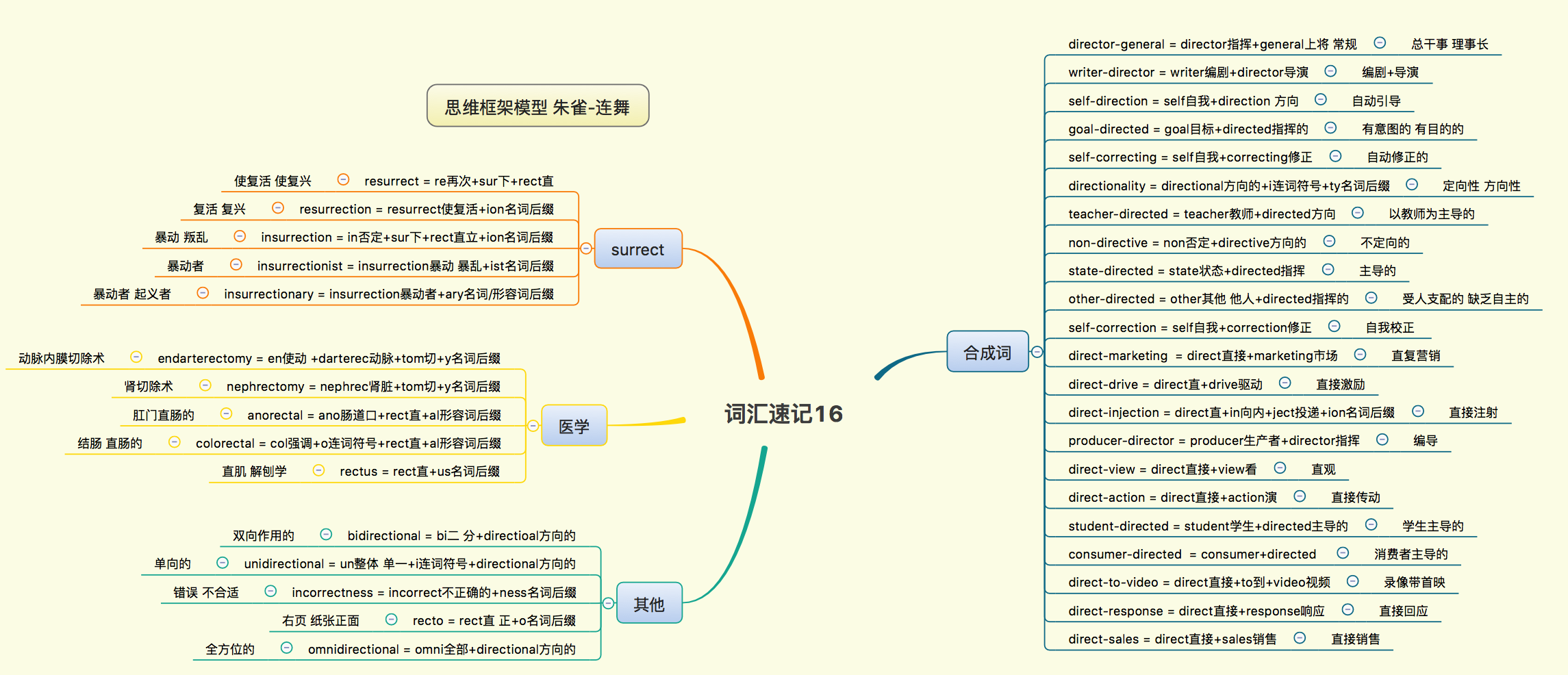 2025年英语单词记忆 词源法-思维导图(16)词源rect-37 科技前沿 • 2025-01-13 21:33 • 阅读 42 英语单词记忆 词源法-思维导图(16)词源rect-371 词源 rect 来源于拉丁语 regere 直 reg 经过音变为 rect 引申含义为 统治 支配 控制 直的 僵直 2 词源扩展 思维导图 大家好,我是讯享网,很高兴认识大家。 1 词源rect 来源于拉丁语 regere 直,-reg-经过音变为-rect-。 引申含义为:统治/支配/控制/直的/僵直 2 词源扩展(思维导图) 讯享网 小讯 随机图片api接口网站整合 上一篇 2025-02-14 22:56 26字母起源二十六个英语字母的起源与含义 下一篇 2025-02-21 07:52 相关推荐 随机图片api接口网站整合 1736035200 富士施乐3119硒鼓型号_富士施乐M288dw加粉清零 1736035200 2025年似然比检验 LRT 1736035200 2025年前端开发工程师面试最常见问题(20题&附答案) 1736035200 测量平差期末考试总结 1736035200 Omi - 前端跨框架跨平台框架 1736035200 区块链共识机制介绍 1736035200 2025年不规则图形数格子的方法_平行四边形,面积公式不用背,推导方法要清楚 1736035200 2025年web打印三种实现方式 1736035200 26字母起源二十六个英语字母的起源与含义 1736035200 显式方法与隐式方法 1736035200 2025年解析互联网广告术语 CPM、CPC、CPA、CPS、CPL、CPR 是什么意思 1736035200 2025年人不是被事物本身困扰是什么理论_别人一说我,就急着怼回去,一不顺心就发脾气,背后到底什么心理... 1736035200 爱情是什么样的? 1736035200 2025年【Java学习】之(Write Once,Run Anywhere) 1736035200 2025年笔算开方 1736035200 IC封装术语大全 1736035200 2025年张量乘积的三种形式 1736035200 版权声明:本文内容由互联网用户自发贡献,该文观点仅代表作者本人。本站仅提供信息存储空间服务,不拥有所有权,不承担相关法律责任。如发现本站有涉嫌侵权/违法违规的内容,请联系我们,一经查实,本站将立刻删除。如需转载请保留出处:https://51itzy.com/kjqy/54103.html