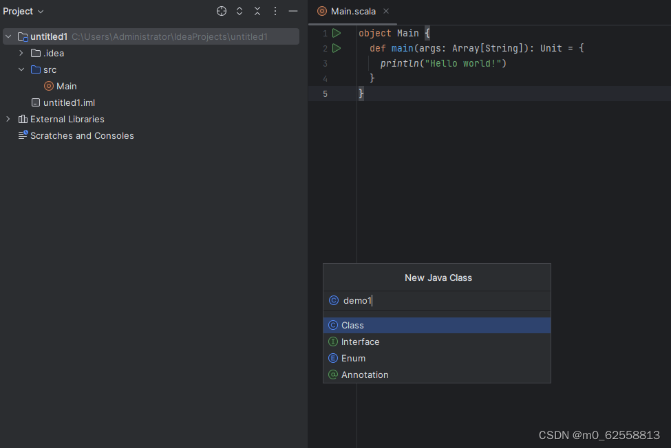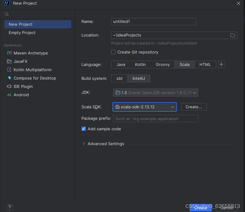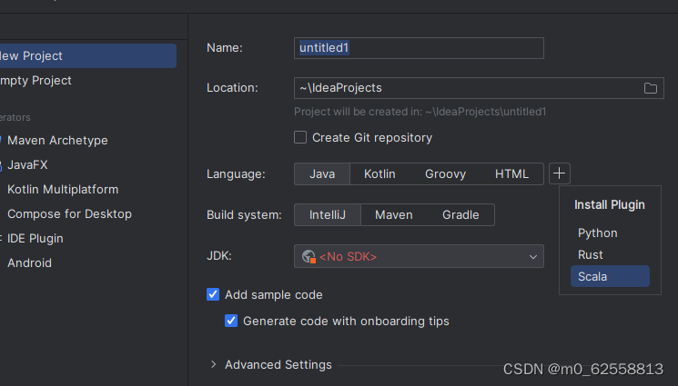 重新创建项目 会发现language栏中多了个scala