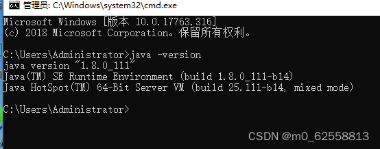 win+r 输入cmd java -version查看版本信息