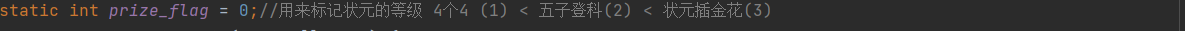 第六步:最重要的是追饼的实现,所以先对追饼进行实现(此次游戏实现的是状元数只有1个的情况),实现思路是写个静态变量prize_flag,并初始化为0