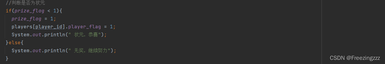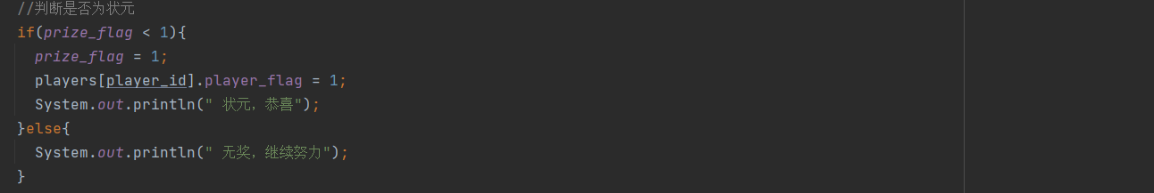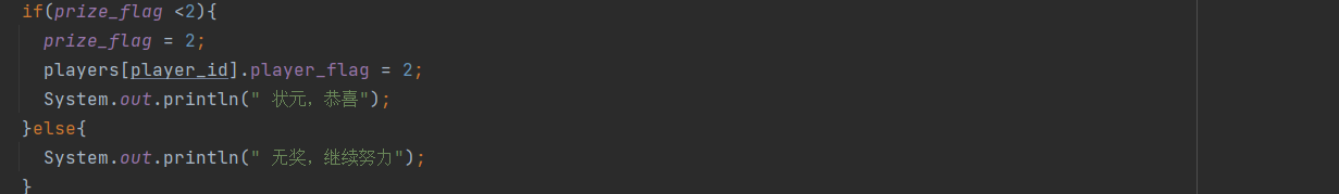 当然如果该玩家的状元比较大,比如说是五子登科时则依旧比较prize_flag与状元等级之间的大小关系,满足小于关系时才改变该玩家类的属性,只不过这里是把prize_flag和player_flag置为2