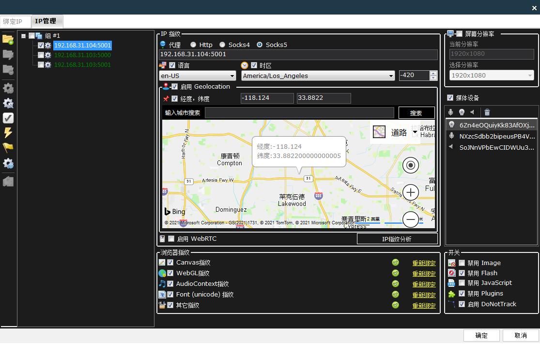模拟硬件指纹:通过不同配置的设置,比如 IP、时区、设备硬件指纹信息等来模拟出目标地区和设备硬件的功能,来实现全自动批量注册、批量登陆、全自动批量养号、全自动下单等操作。