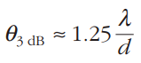 如果是线阵天线或者矩阵天线,3dB波束宽度为: