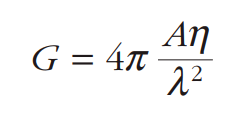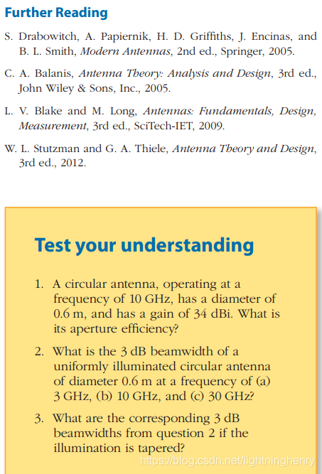 1. 一种频率为10GHz的圆形天线,其直径为0.6m,增益34dBi。它的孔径效率η是多少?