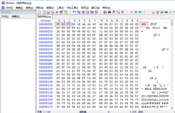 图片打不开(猜测密钥就在图片中),把图片拖入winhex中,发现缺少文件头(.jpg FFD8FF),粘贴3字节修改一下即可。