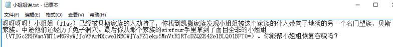 根据文字的提示说明,知道需要用到base64解码,rabbit解码和凯撒解码,所以将里面的字符串一步步进行解码: