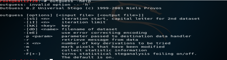 输入命令outguess -help 即可获得使用格式如下图