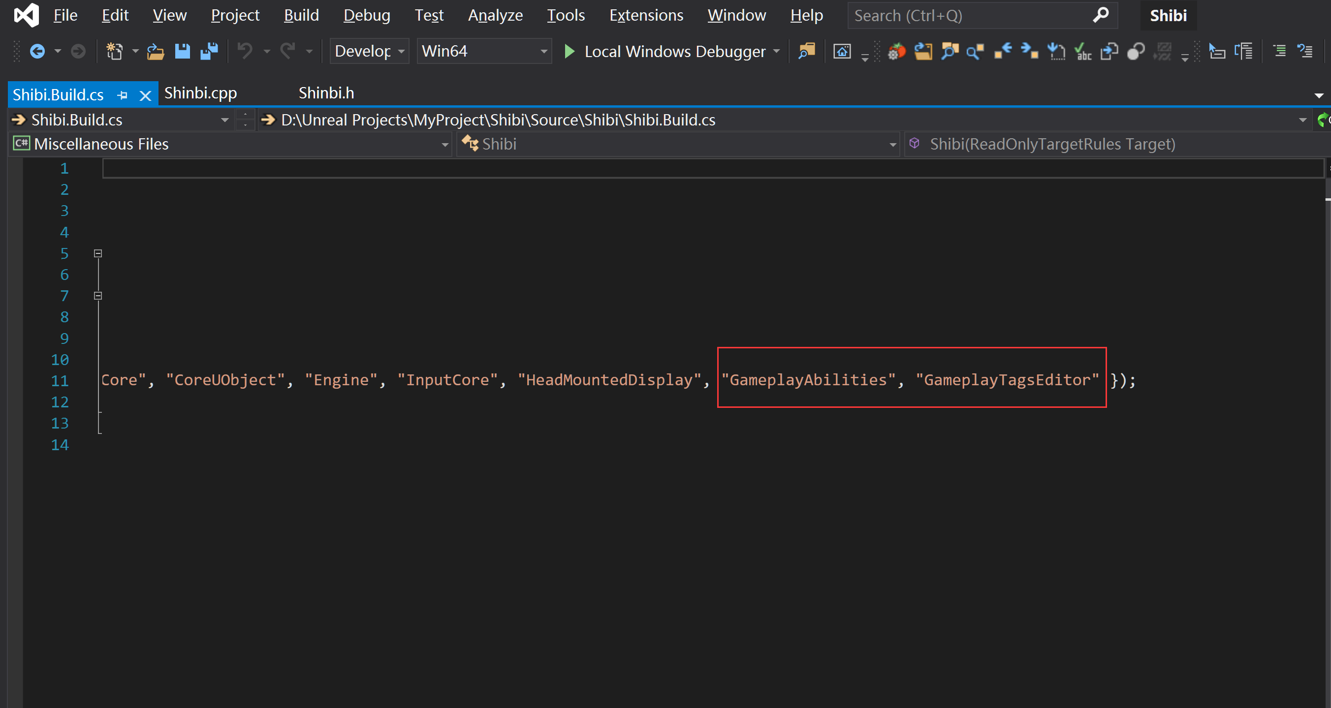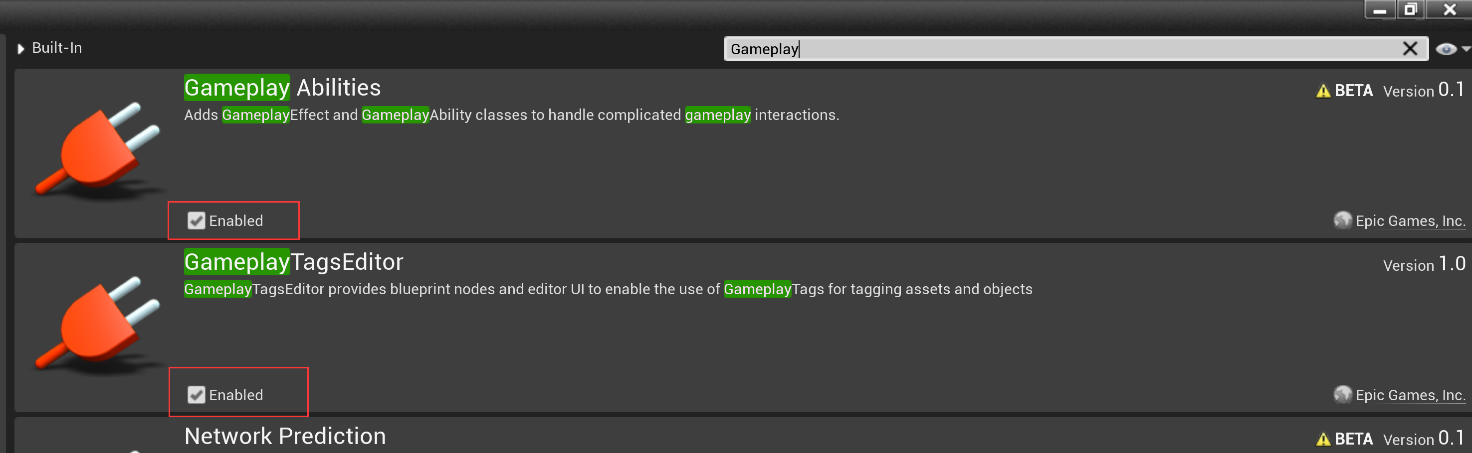 首先我们需要开启GameplayAbilities和GameplayTagsEditor两个模块。