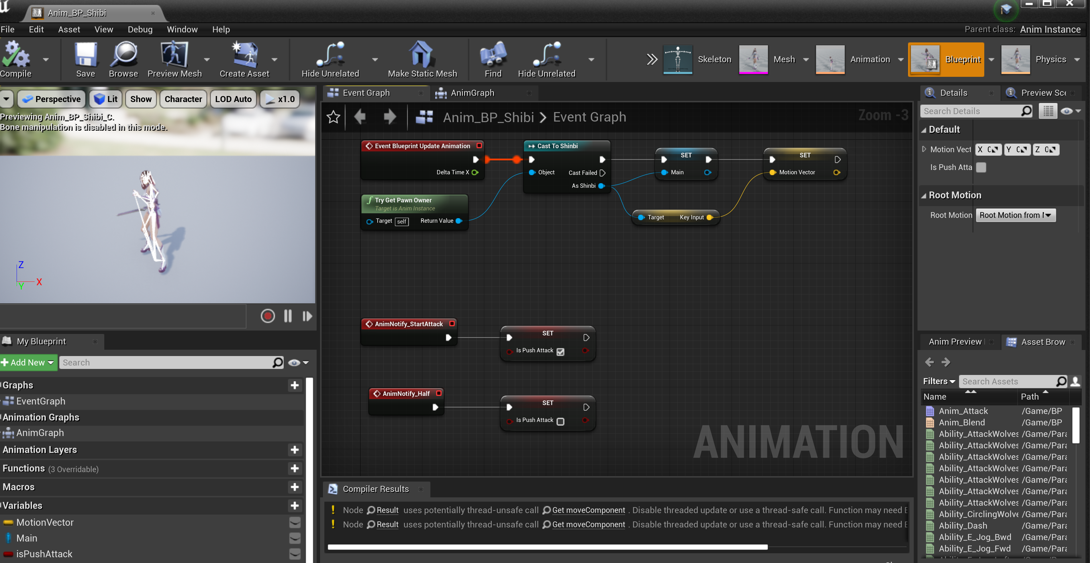 1 // Fill out your copyright notice in the Description page of Project Settings. 2 3 #pragma once 4 5 #include "CoreMinimal.h" 6 #include "GameFramework/Character.h" 7 #include "GameFramework/CharacterMovementComponent.h" 8 #include "Components/CapsuleComponent.h" 9 #include "AbilitySystemInterface.h" 10 #include "AbilitySystemComponent.h" 11 #include "Abilities/GameplayAbility.h" 12 #include "GameplayAbilities/Public/GameplayAbilitySpec.h" 13 #include "Shinbi.generated.h" 14 15 UCLASS() 16 class SHIBI_API AShinbi : public ACharacter,public IAbilitySystemInterface 17 { 18 GENERATED_BODY() 19 20 public: 21 // Sets default values for this character's properties 22 AShinbi(); 23 24 protected: 25 // Called when the game starts or when spawned 26 virtual void BeginPlay() override; 27 28 public: 29 // Called every frame 30 virtual void Tick(float DeltaTime) override; 31 32 // Called to bind functionality to input 33 virtual void SetupPlayerInputComponent(class UInputComponent* PlayerInputComponent) override; 34 35 UPROPERTY(EditAnywhere,BlueprintReadWrite,Category="Shinbi | Properties") 36 float LookRate; 37 UPROPERTY(EditAnywhere, BlueprintReadWrite, Category = "Shinbi | Properties") 38 float LookUpRate; 39 40 UPROPERTY(EditAnywhere, BlueprintReadWrite, Category = "Shinbi | Properties") 41 float MoveSpeed; 42 43 UPROPERTY(EditAnywhere, BlueprintReadWrite, Category = "Shinbi | Properties") 44 FRotator mouseInput; 45 46 UPROPERTY(EditAnywhere, BlueprintReadWrite, Category = "Shinbi | Properties") 47 FVector keyInput; 48 49 UPROPERTY(EditAnywhere, BlueprintReadWrite, Category = "Shinbi | Properties") 50 class UCharacterMovementComponent* moveComponent; 51 52 public: 53 UPROPERTY(VisibleAnywhere, BlueprintReadWrite, Category = "Shinbi | Camera") 54 class USkeletalMeshComponent* shibiSkeletal; 55 56 UPROPERTY(VisibleAnywhere,BlueprintReadWrite, Category = "Shinbi | Camera") 57 class UCameraComponent* cameras; 58 59 UPROPERTY(VisibleAnywhere, BlueprintReadWrite, Category = "Shinbi | Camera") 60 class USpringArmComponent* springArm; 61 62 UPROPERTY(VisibleAnywhere, BlueprintReadWrite, Category = "Shinbi | Animation") 63 UAnimMontage* montageAttack; 64 65 UPROPERTY(VisibleAnywhere, BlueprintReadWrite, Category = "Shinbi | AbilitiesComponent") 66 class UAbilitySystemComponent* AbilityComp; 67 68 virtual UAbilitySystemComponent* GetAbilitySystemComponent() const; 69 70 UFUNCTION(BlueprintCallable, Category = "Shinbi | UGameplayAbilities") 71 void AquireAbility(TSubclassOf<UGameplayAbility> listAblities); 72 73 void moveForward(float value); 74 void moveLeft(float value); 75 void lookUp(float value); 76 void lookRight(float value); 77 void Jump(); 78 void Attack(); 79 };