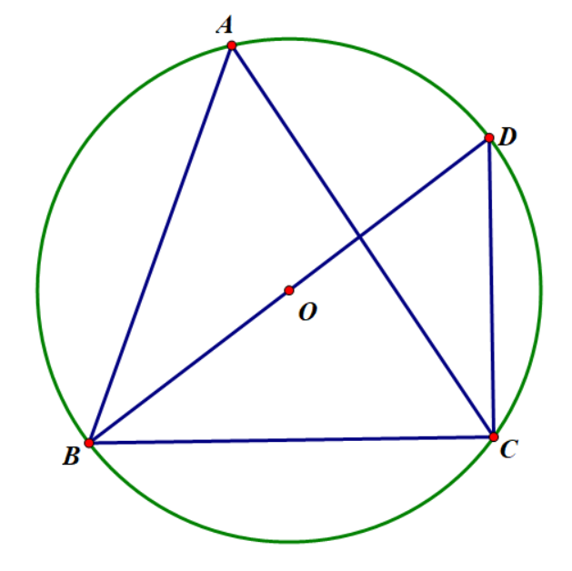 现在我们发现 B D BD BD 是圆 O O O 的直径(记为 2 R 2R 2R, R R R 即三角形外接圆半径),它等于 B C sin D = a sin A \dfrac{BC}{\sin D}=\dfrac{a}{\sin A} sinDBC=sinAa。