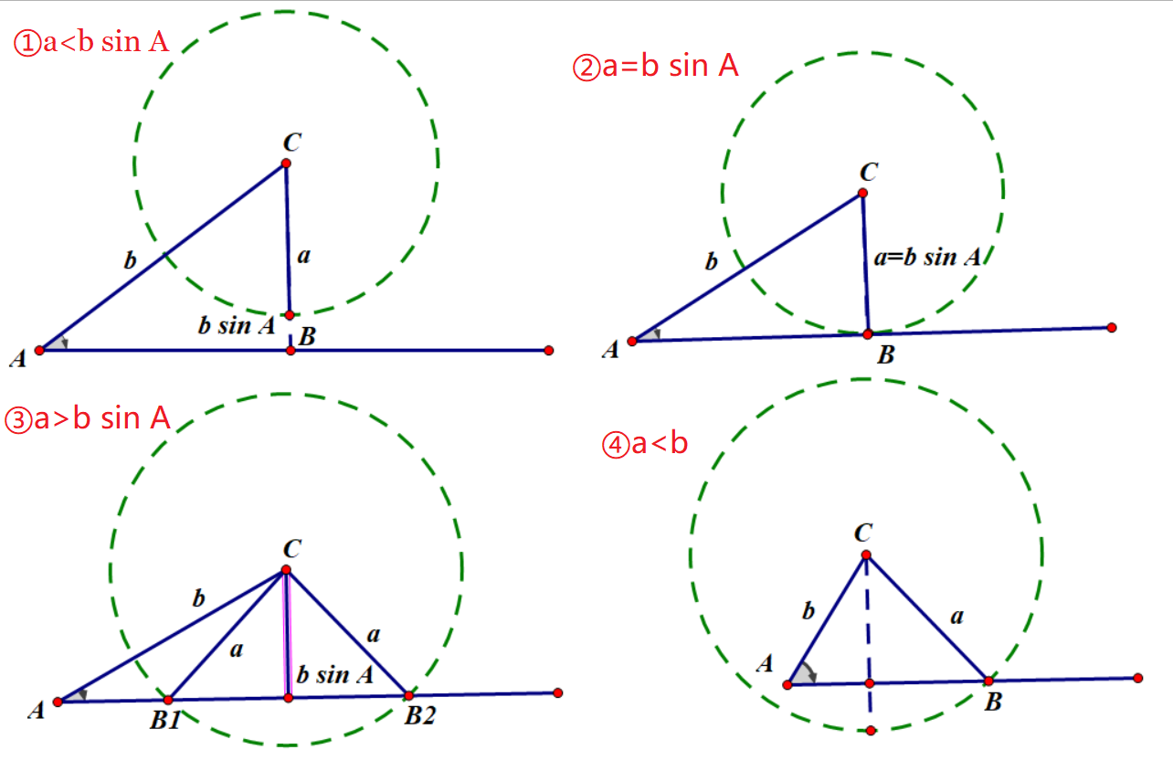 所以,现在我们需要讨论,当 a , b , sin A a,b,\sin A a,b,sinA 出现什么关系的时候,三角形的形状唯不唯一。