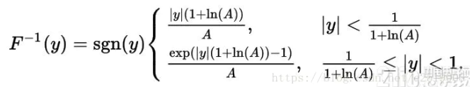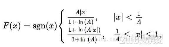画出图来则是如下图,用x表示输入的采样值,F(x)表示通过A-law变换后的采样值,y是对F(x)进行量化后的采样值。