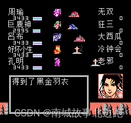 战斗结束后得到黑金羽衣(三维+255,攻击+40)