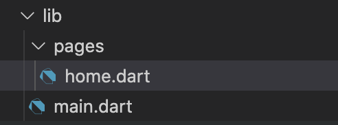 首先我们先在 lib 文件夹新建一个 pages 文件夹并在该文件夹里创建一个 home.dart 文件作为我们的首页。