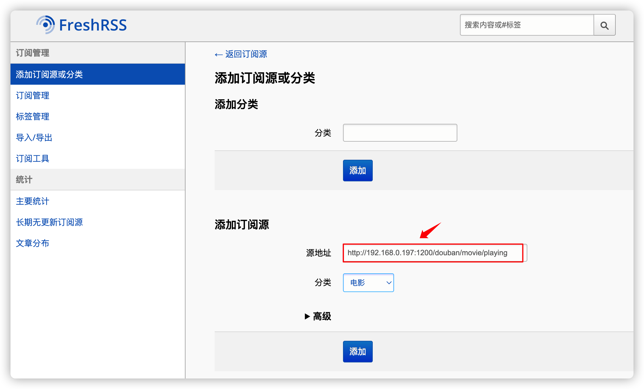 RSSHub 要不要反代?不需要~,只要 FreshRSS 在局域网中能访问到就行。