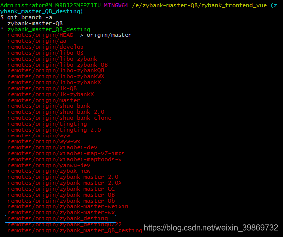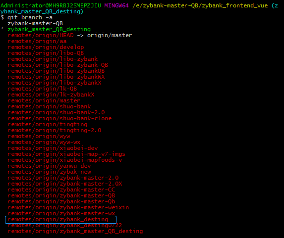 本地有两个分支:zybank-master-QB 和 zybank_master_QB_desting(当前所在分支)
